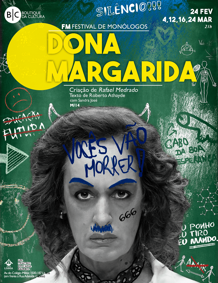Dona Margarida é uma professora autoritária, doce, cruel, patética, feroz, maternal e completamente imprevisível. Em uma aula sem fim, ela transforma a sala em um campo de poder, afeto e loucura. A plateia é a sua turma. O quadro negro, seu espelho. Um espetáculo onde o ensino é um pretexto para o controle e o colapso é matéria obrigatória.