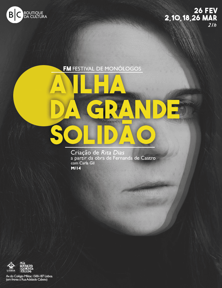 A partir da obra A Ilha da Grande Solidão, de Fernanda de Castro, e de textos originais, Rita Dias e Carla Gil criam uma ilha onde cabem todas as gerações. Do nascimento à morte, a solidão não avisa o momento em que chega. Simplesmente acontece.